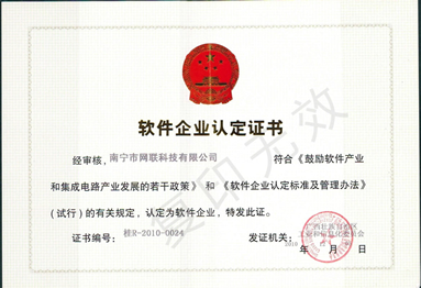 《軟件企業(yè)認(rèn)定證書》證書編號(hào):桂R-2010-0024《軟件產(chǎn)品登記證書》證書編號(hào):桂DGY-2010-0058